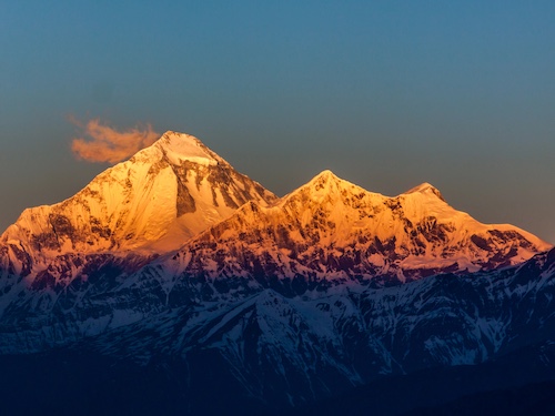 בשעות הבוקר נמשיך בנסיעה צפונה לאורך נהר הקאלי גאנדאקי, בין פסגות ההימלאיה הגבוהות - ממערב לנו רכס הדאולגירי שמגיע בשיאו ל-8,167 מ', וממזרח, מביט אלינו "זנב הדג" - המצ'אפוצ'ארה (6,993 מ'). ניסע בין כפרים קטנים, שטחים מעובדים, מפלי מים, מקדשים וסטופות, ולהשלמת התפאורה, ההצגה הגדולה של הטבע - פסגות מושלגות המתנשאות לגבהים שמעל 8000 מ'.